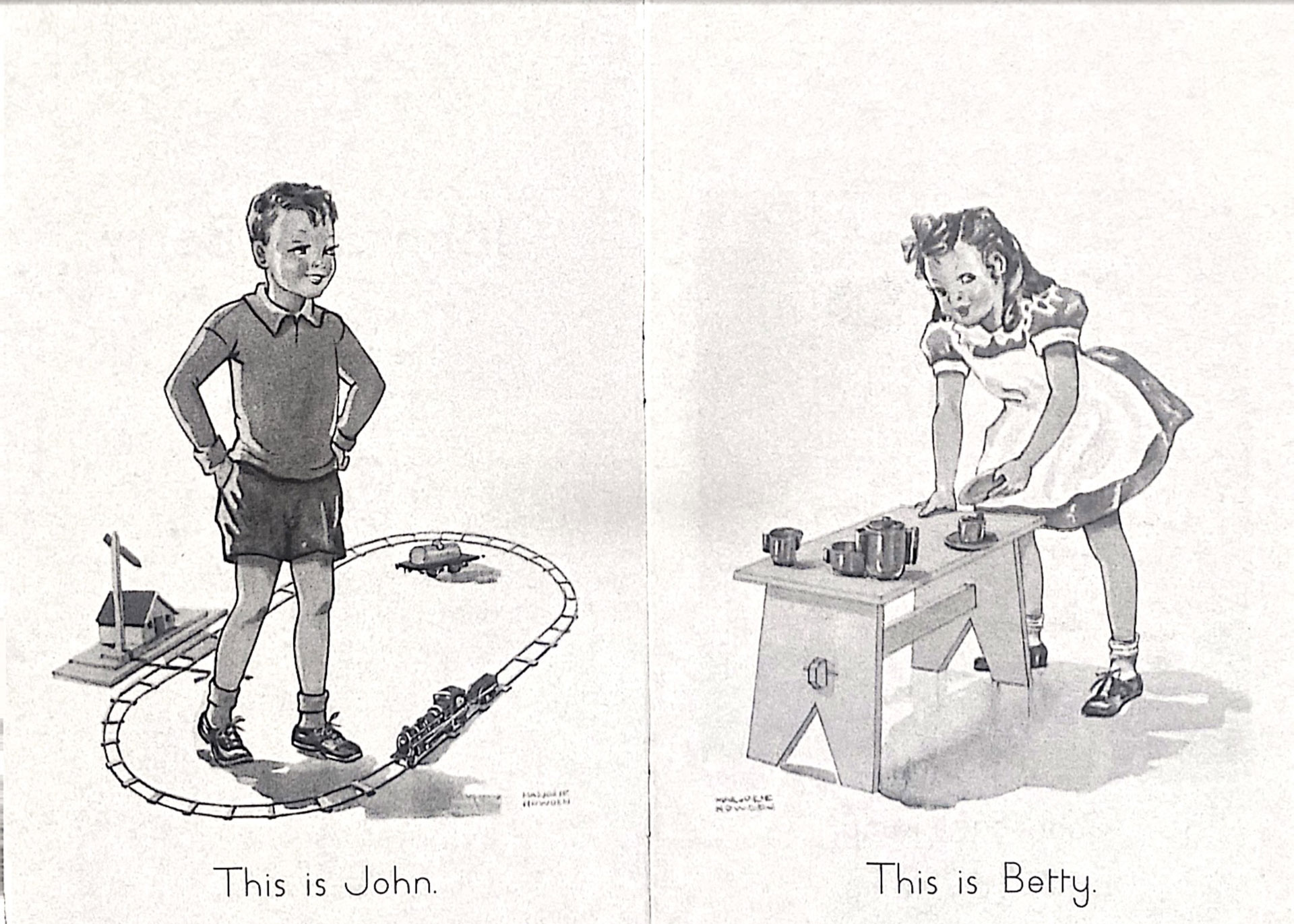 John and Betty, Education Department of Victoria, illustration by Marjorie Howden and photography by Paul Gleeson, 1951